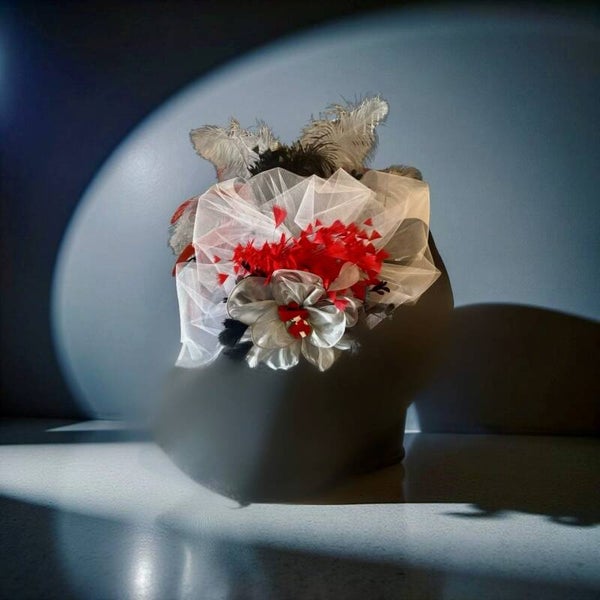 This elegant larg brim black flip hat showcases exquisite silver, red and black accents, ensuring a prestigious look from all sides!