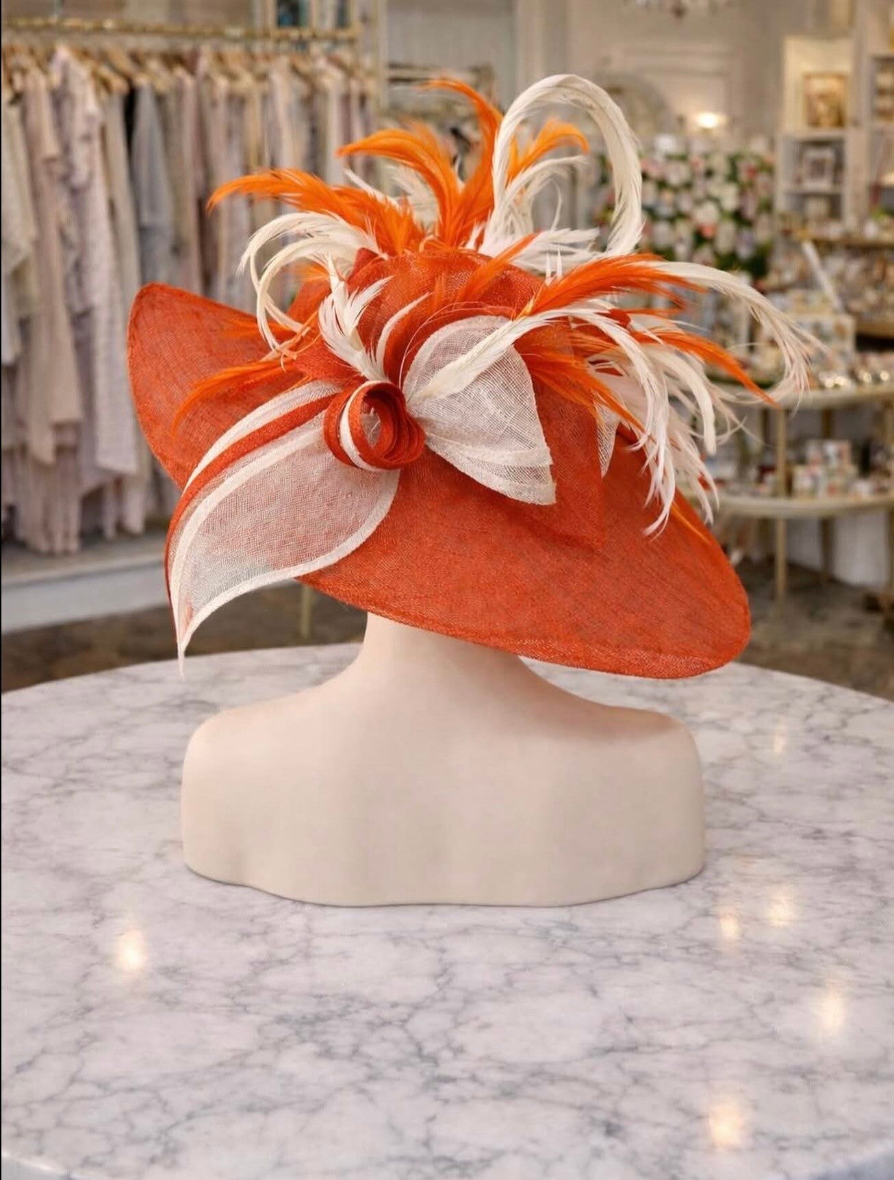 This gorgeous Sinemay Hat showcases clusters of rich cobalt feathers frame the base, adding texture and fullness, while the angled placement gives the hat a flattering, face-framing profile. The overall look is regal, confident, and unmistakably Derby-appropriate, evoking sophistication, confidence, and high fashion.