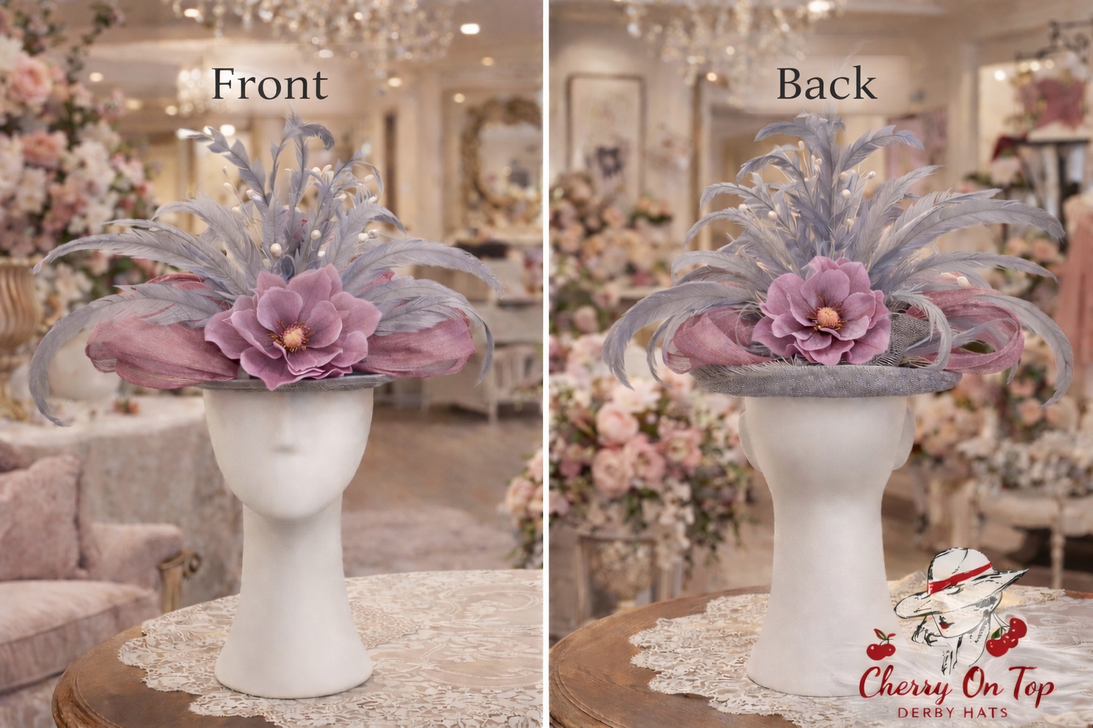 Lightweight and feminine, this fascinator is designed to complement soft pastel Derby dresses and plum accessories, making it the perfect finishing touch for a day at Churchill Downs, a Derby garden party, or any spring racing event where style takes center stage.